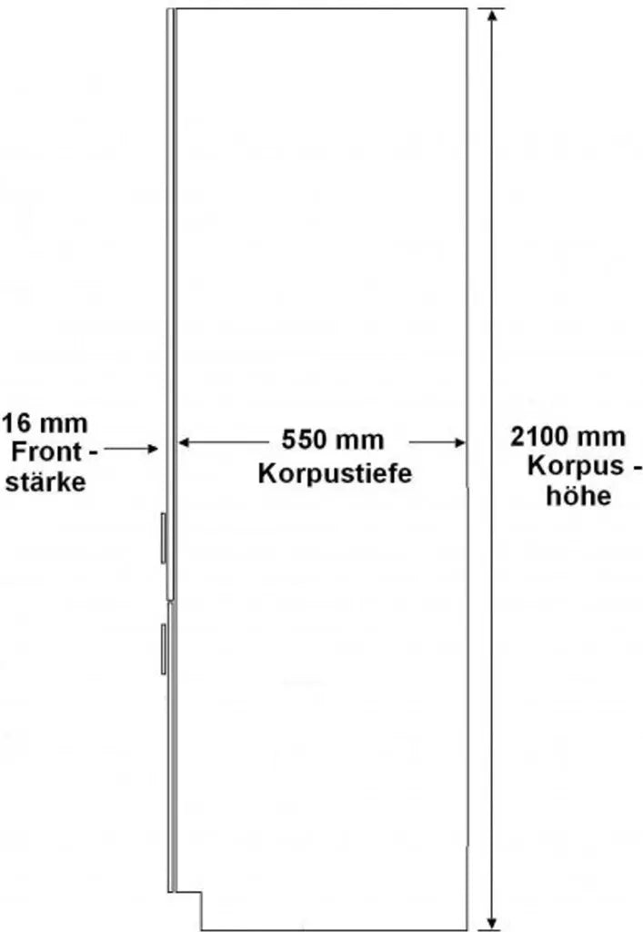 1x Hochschrank 60 cm mit 2 Türen und 5 Böden, davon 1 fester Boden und 4 variabel. (Im oberen Fach haben Sie eine Nische von ca. 125 cm, hier kann ggf. ein Einbaukühlschrank mit einem Nischenmaß von 122 cm eingebaut werden, in diesem Fall müssen Sie die vorhandene Rückwand und die Einlegeböden bei der Montage weglassen.)